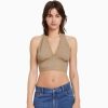 Bershka نحيف نايلون هالترنك أعلى المحاصيل مع سدادات الكاكي 804X794 ملابس