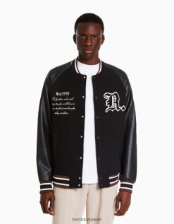 Bershka رجال قماش ثقيل وسترة منفوخة من الجلد الصناعي أسود 804X3093 ملابس