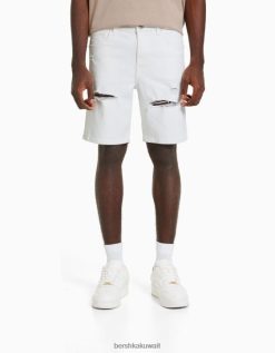 Bershka رجال شورت برمودا جينز ممزق متناسق أزرق 804X3302 ملابس