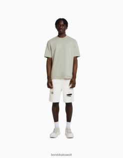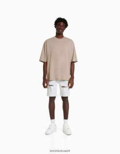 Bershka رجال شورت برمودا جينز ممزق مع بقع طلاء أبيض 804X3333 ملابس