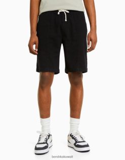 Bershka رجال شورت عرق برمودا بتصميم ريفي أسود 804X3308 ملابس