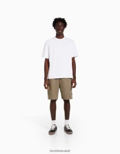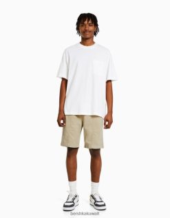 Bershka رجال شورت عرق برمودا بتصميم ريفي أبيض 804X3307 ملابس