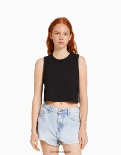 Bershka للجنسين شورت تويل مريح مع حواف مطوية أصفر 804X4030 ملابس