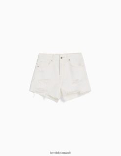 Bershka للجنسين شورت تويل مريح مع حواف مطوية كريم 804X4028 ملابس