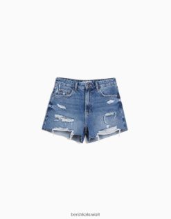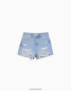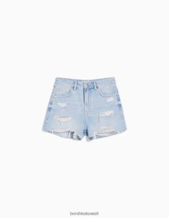 Bershka للجنسين شورت جينز ممزق عتيق أزرق فاتح 804X4053 ملابس