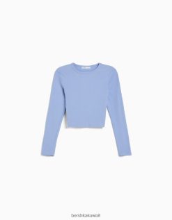 Bershka للجنسين تي شيرت مضلع طويل الأكمام أزرق فاتح 804X3861 ملابس