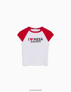 Bershka للجنسين تي شيرت مطبوع بأكمام قصيرة مضلع أحمر 804X3811 ملابس