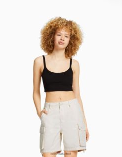 Bershka للجنسين شورت تويل مريح مع حواف مطوية أسود 804X4029 ملابس