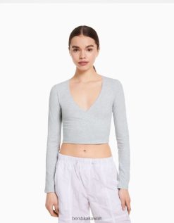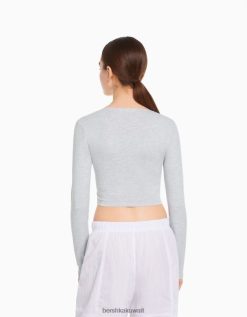 Bershka للجنسين طويلة الأكمام عبرت تي شيرت رمادي 804X3754 ملابس