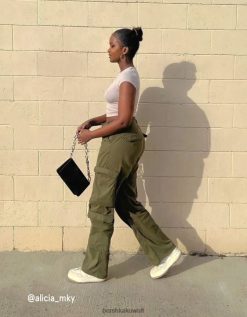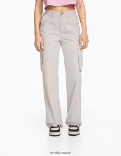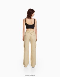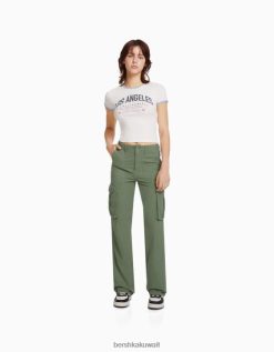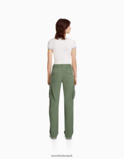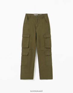 Bershka للجنسين قابل للتعديل متعدد الجيوب نسيج قطني طويل السراويل البضائع الكاكي 804X3878 ملابس