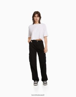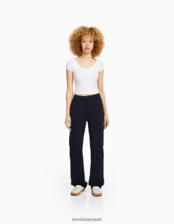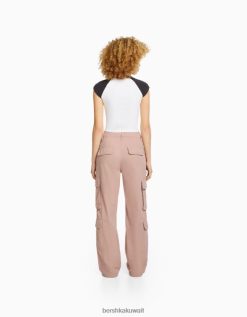 Bershka للجنسين قابل للتعديل متعدد الجيوب نسيج قطني طويل السراويل البضائع لون القرنفل 804X3873 ملابس