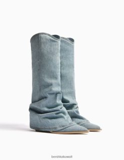 Bershka نحيف أحذية الكاحل رعاة البقر الدنيم مع مهدب مغسول باللون الأزرق 804X1943 الأحذية
