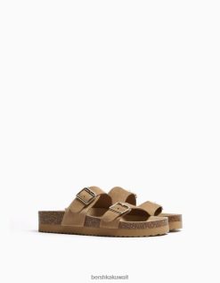 Bershka نحيف الصنادل الجلدية المسطحة التوى رمل 804X1881 الأحذية
