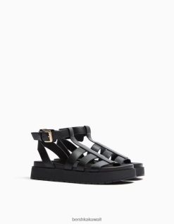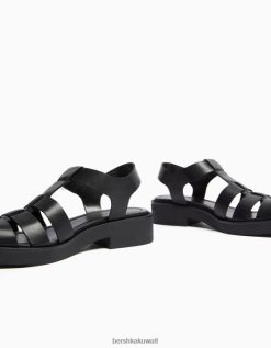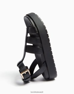 Bershka نحيف الصنادل المسطحة مع الأشرطة أسود 804X2230 الأحذية