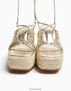 Bershka نحيف أسافين من الجوت متعددة الأحزمة مع حزام كاحل بيج فاتح 804X1853 الأحذية