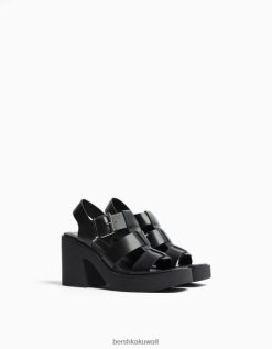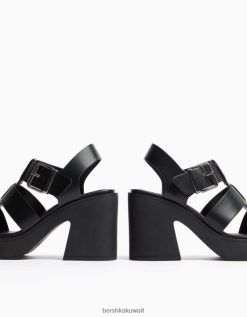 Bershka نحيف الصنادل ذات الكعب العالي مع أشرطة الفينيل محض 804X2158 الأحذية
