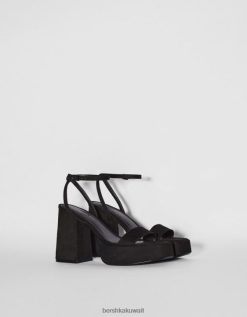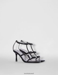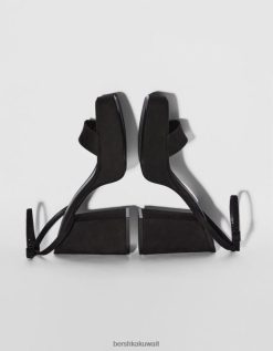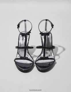 Bershka نحيف صندل بكعب عالٍ مع حزام كاحل ورقعة معدنية أسود 804X2197 الأحذية