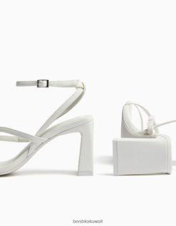 Bershka نحيف صندل بكعب عالي وحزام كاحل أبيض 804X2167 الأحذية