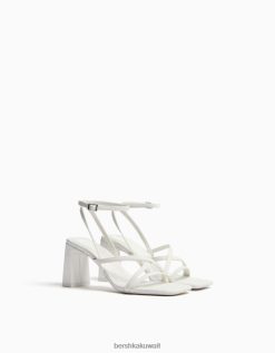 Bershka نحيف صندل بكعب عالي وحزام كاحل أبيض 804X2161 الأحذية