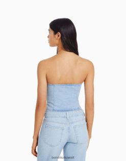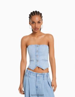 Bershka نحيف صدرية من الدنيم مع أكتاف وأزرار مكشوفة أزرق فاتح 804X1955 ملابس