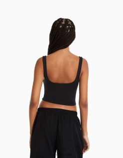 Bershka نحيف اقتصاص أعلى مشد مع الأشرطة اللون البيج 804X649 ملابس