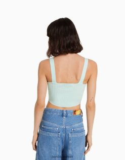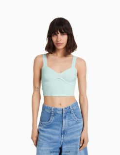 Bershka نحيف أعلى نايلون مضلع مع الأشرطة أزرق فاتح 804X834 ملابس