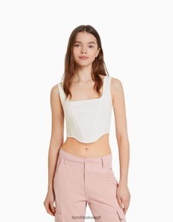 Bershka نحيف اقتصاص أعلى مشد بحزام متماسكة أبيض 804X892 ملابس