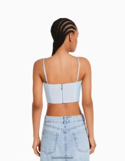 Bershka نحيف اقتصاص خزان أعلى مغسول باللون الأزرق 804X814 ملابس