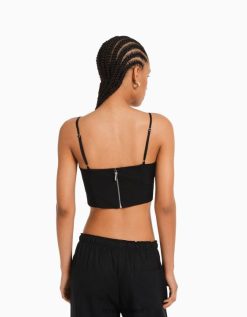 Bershka نحيف بلا أكمام أعلى سلس غير متماثل رمادي 804X877 ملابس