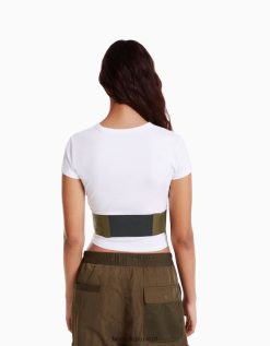 Bershka نحيف نايلون هالترنك أعلى المحاصيل مع سدادات أبيض 804X793 ملابس