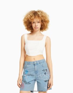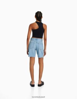 Bershka نحيف شورت برمودا دينم مطبوع أزرق فاتح 804X1723 ملابس