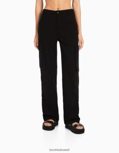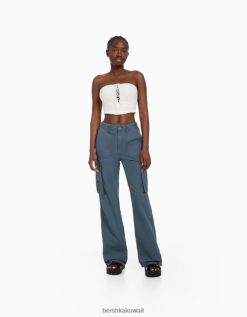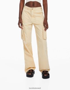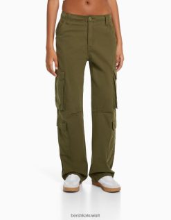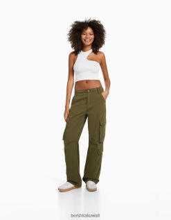 Bershka نحيف قابل للتعديل متعدد الجيوب نسيج قطني طويل السراويل البضائع الكاكي 804X1322 ملابس