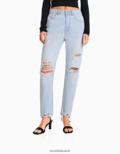 Bershka نحيف ممزق الجينز أمي أزرق فاتح 804X1553 ملابس