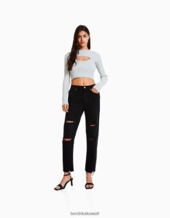 Bershka نحيف ممزق الجينز أمي أسود 804X1554 ملابس