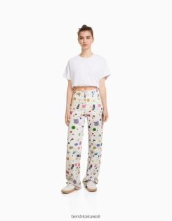 Bershka نحيف السراويل كولوت مغسول باللون الأزرق 804X1701 ملابس