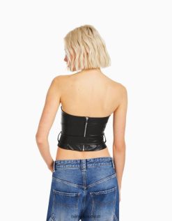 Bershka نحيف مشد مضلع أسود 804X725 ملابس