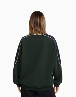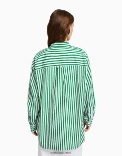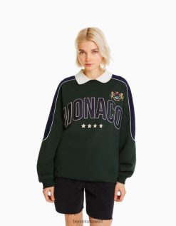 Bershka نحيف قميص من النوع الثقيل بأكمام قصيرة وفتحة رقبة على شكل حرف V مع طباعة أخضر 804X586 ملابس