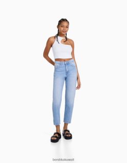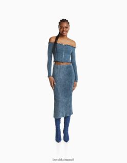 Bershka نحيف توب قصير من البوبلين مطبوع أزرق فاتح 804X706 ملابس