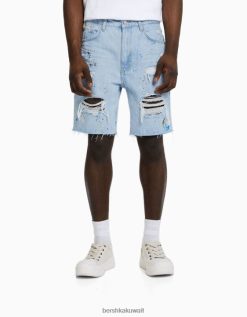 Bershka رجال شورت برمودا جينز ممزق متناسق أزرق فاتح 804X3304 ملابس