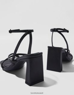 Bershka نحيف صندل بكعب عالي وحزام كاحل أسود 804X2022 الأحذية