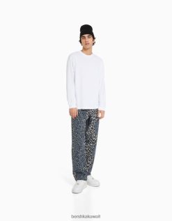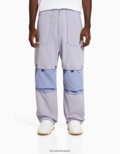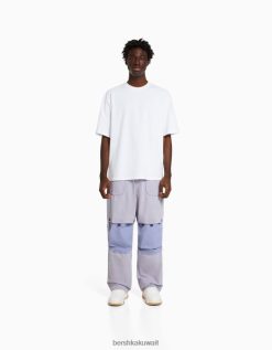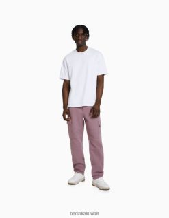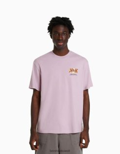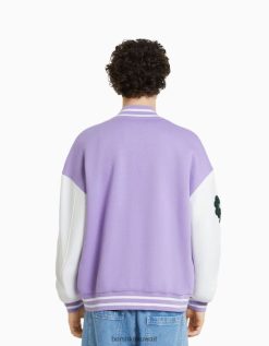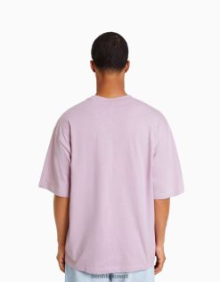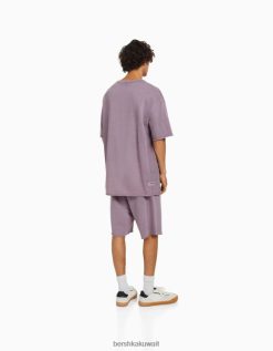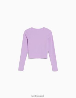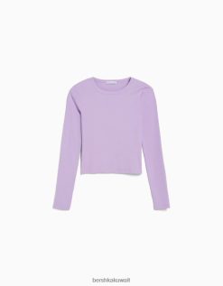 Bershka للجنسين تي شيرت مضلع طويل الأكمام البنفسجي 804X3805 ملابس
