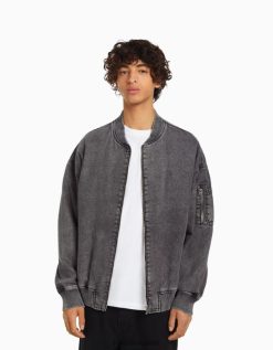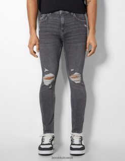 Bershka رجال شورت برمودا جينز ممزق الرمادي الداكن 804X3343 ملابس