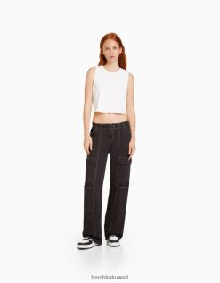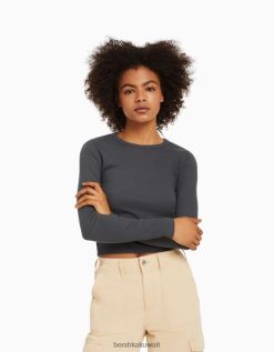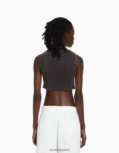 Bershka للجنسين اقتصاص خزان أعلى الرمادي الداكن 804X3752 ملابس
