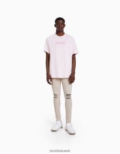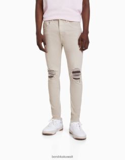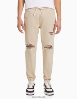 Bershka رجال شورت برمودا جينز ممزق ملون اللون البيج 804X3310 ملابس