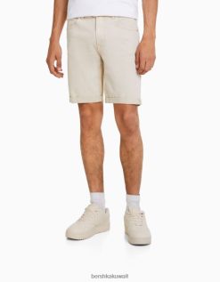 Bershka رجال شورت برمودا دنيم نحيف اللون البيج 804X3346 ملابس