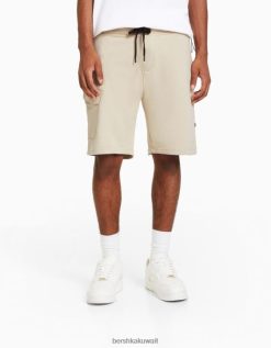 Bershka رجال شورت برمودا للشحن القطيفة اللون البيج 804X3330 ملابس