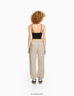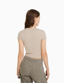 Bershka للجنسين تي شيرت مضلع بأكمام قصيرة رمل 804X3718 ملابس