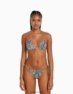 Bershka نحيف توب مطبوع بلا أكمام مع أربطة جانبية كريم 804X679 ملابس