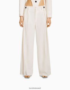 Bershka نحيف شورت تويل مريح مع حواف مطوية كريم 804X1698 ملابس