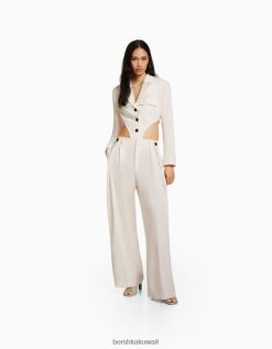 Bershka نحيف شورت برمودا من الدنيم بكسرات كريم 804X1888 ملابس